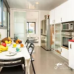 У віллі в Сіджасі є кавоварка та повністю обладнана кухня для приготування їжі. На кухні також є електрочайник, духовка і скляний посуд. Відстань від Super Villa Oasis Fab Sea And Sitges View With Private Pool And Air Conditioning до аеропорту Барселона - Ель-Прат становить 30 км, а автобусна зупинка Passeig de l'Espigol - Passeig Fonoll знаходиться всього лише за 10 хвилин ходьби. У готелі є тераса, на якій можна відпочити після напруженого дня, а також відкритий басейн.